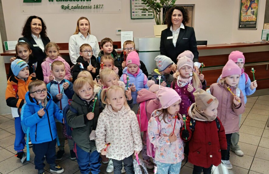 Podczas wizyty mali uczniowie mieli okazję zajrzeć „za kulisy” codziennej pracy banku i poznać tajniki bankowości. Pracownicy placówki opowiedzieli dzieciom, czym zajmuje się bank, jak bezpiecznie korzystać z pieniędzy i dlaczego warto oszczędzać już od najmłodszych lat.