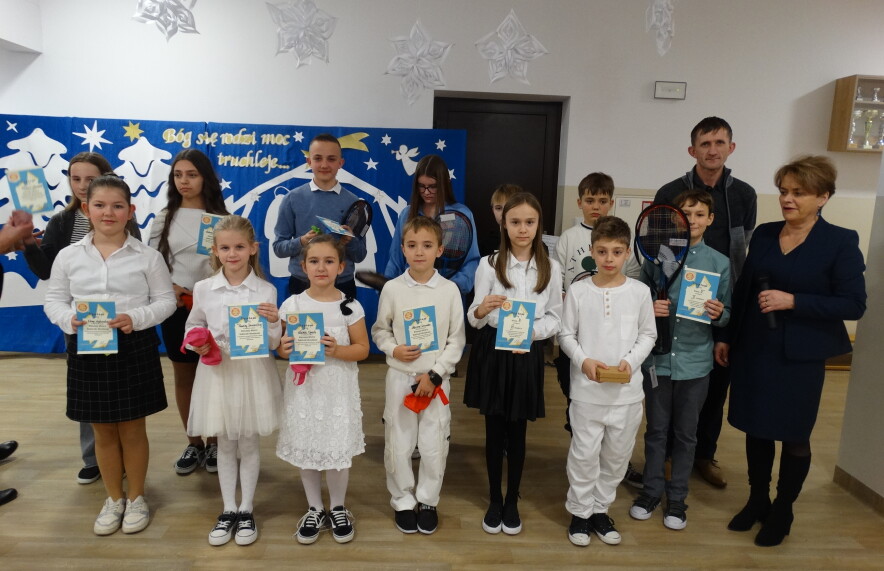 Uroczyste wręczenie nagród uczestnikom konkursu odbyło się 20 grudnia br. podczas apelu, gdzie cała społeczność szkolna mogła podziwiać laureatów. Wspólna atmosfera radości i jedności zaowocowała kolędowaniem, co dodatkowo podkreśliło świąteczny nastrój tego wyjątkowego dnia.