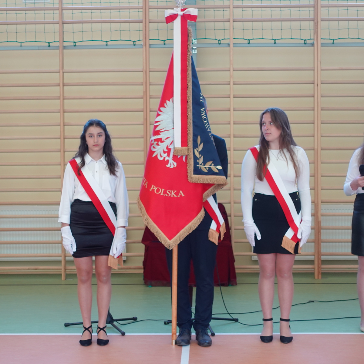 Po zakończonej Ofierze Eucharystycznej, na sali gimnastycznej odbyła się ceremonia nadania i przekazania przez Radę Rodziców sztandaru dyrektorowi, a następnie uczniom szkoły. Akt nadania sztandaru, symbolu najwyższych wartości, tradycji, honoru i umiłowania Ojczyzny, przeczytała i wręczyła dyrektorowi pani Lucyna Jonik. W dalszej części pani dyrektor wręczyła sztandar przedstawicielom uczniów. Nastąpiła krótka jego prezentacja. Zebrani mogli zobaczyć jak wygląda jego awers i rewers.