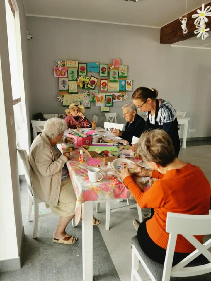 Oferujemy opiekę całodobową, rehabilitację ruchową i specjalistyczną (powypadkową, poudarową). Prowadzimy również terapię zajęciową, podopieczni wykonują różne "cudeńka" podczas prac manualnych. Naszym podopiecznym serwujemy pyszną, domową kuchnię dostosowaną do wymagań dietetycznych. Zajmujemy się również realizacją recept i zaleceń medycznych.W jaki sposób wypełniają Państwo czas podopiecznym? Jak wygląda Państwa dzień pracy?