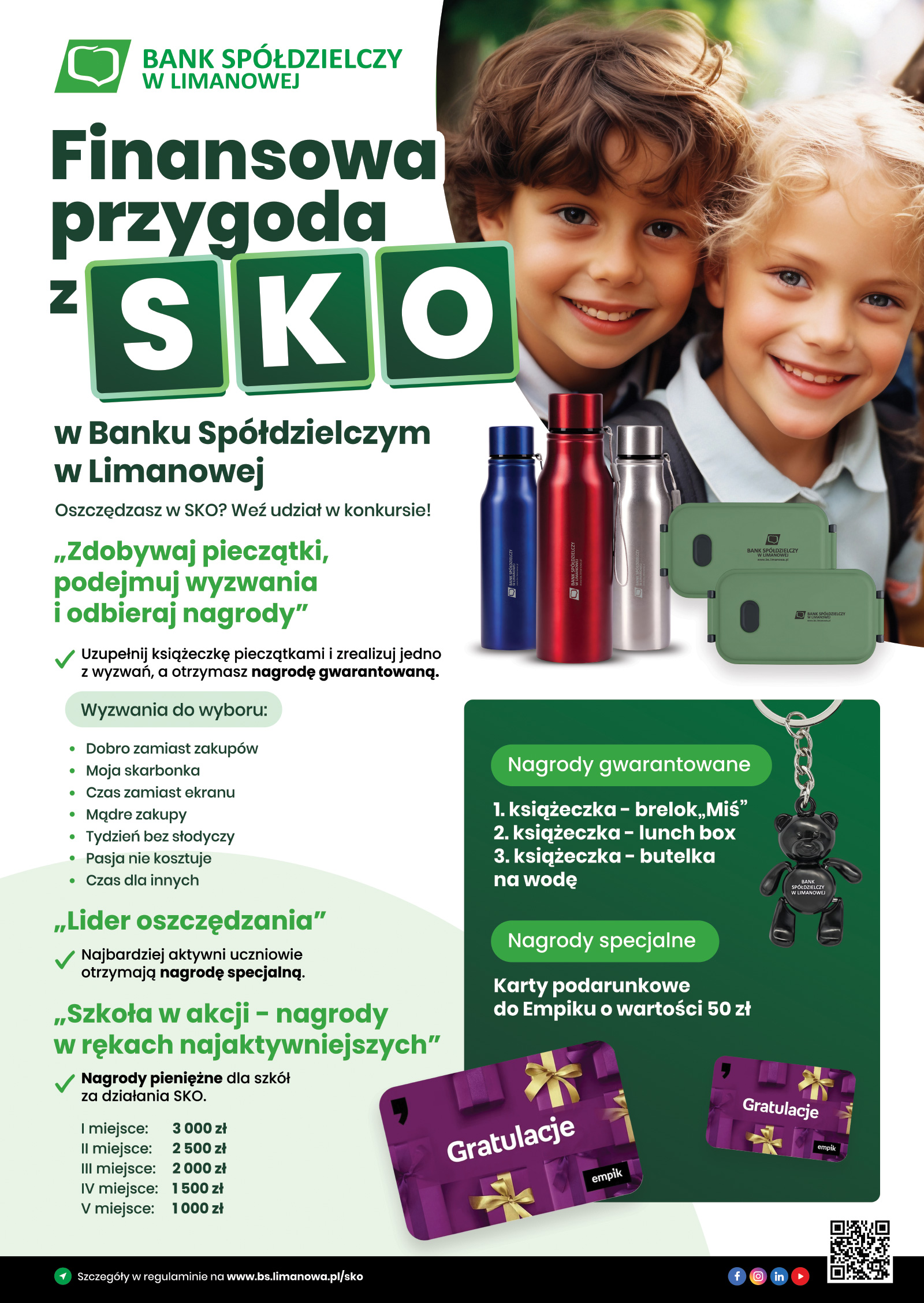 Oszczędzasz w SKO? Weź udział w naszym konkursie "Finansowa przygoda z SKO w Banku Spółdzielczym w Limanowej" i zdobywaj atrakcyjne nagrody!